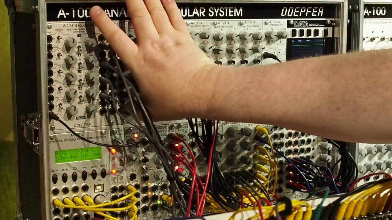 Die Schaltkontakte der 12 Eingangs-Buchsen und die 4 Ausgänge sind mit Stiftleisten verbunden, so dass das Modul intern mit anderen polyphonen Modulen vorverkabelt werden kann (beispielsweise die 4 Eingänge A mit einem A-111-4, die 4 Eingänge C mit einem weiteren A-111-4 und die Ausgänge mit dem polyphonen Filter A-105-4). Da die Schaltkontakte der Buchsen für die interne Verkabelung verwendet werden, kann die interne Vorverkabelung jederzeit überschrieben werden, indem die Buchsen an der Frontplatte beschaltet werden.