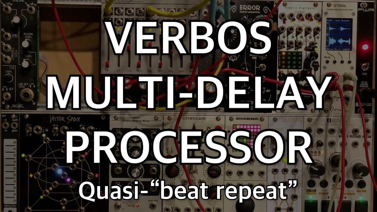 Der Multi-Delay Processor ist nicht einfach nur zur Klangveredelung, sondern als fundamentaler Bestandteil von Patches gedacht. Kern des Moduls sind acht digitale Echo-Stufen in serieller Anordnung. Gemeinsam formen die Schaltungen ein Multi-Tap-Delay. Jede Signalwiederholung lässt sich, ebenso wie das Rohmaterial, per Fader in der Lautstärke regulieren. Rhythmische Echos sind also intuitiv erstellbar. Außerdem gibt es Audioabgriffe und Envelope-Follower mit CV-Ausgängen für Trockensignale und die einzelnen Taps. Zur Taktung der Delay-Stufen wird eine analoge Clock-Schaltung verwendet. Sie kann durch ein großes Potentiometer und zwei CV-Eingänge mit bipolaren Abschwächern beeinflusst werden. Veränderungen dieses Parameters führen, im laufenden Betrieb, zu klassischen Pitch-Effekten. Spätestens hier hört man ganz klar die Überlegenheit des von Verbos eingesetzten Serial-Memory-Designs gegenüber Standard-Effekt-Chips. Der Multi-Delay Processor liefert, trotz digitalem Kern, an klassische Eimerkettenschaltungen erinnerndes Flair. – Aber sauberer und transparenter.