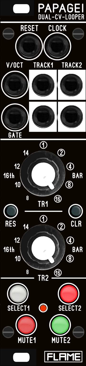 Flame Papagei is an externally clocked looper with a length of up to 16 bars in a 16th note grid.