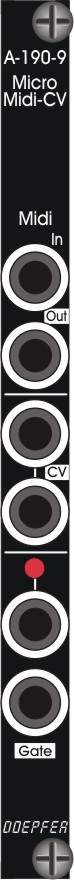 The A-190-9 module is also available in a Vintage Edition and is a simple MIDI-to-CV/Gate interface. It is intended for use in situations where the more advanced features of the other MIDI interfaces in the A-190-x series are not necessary.