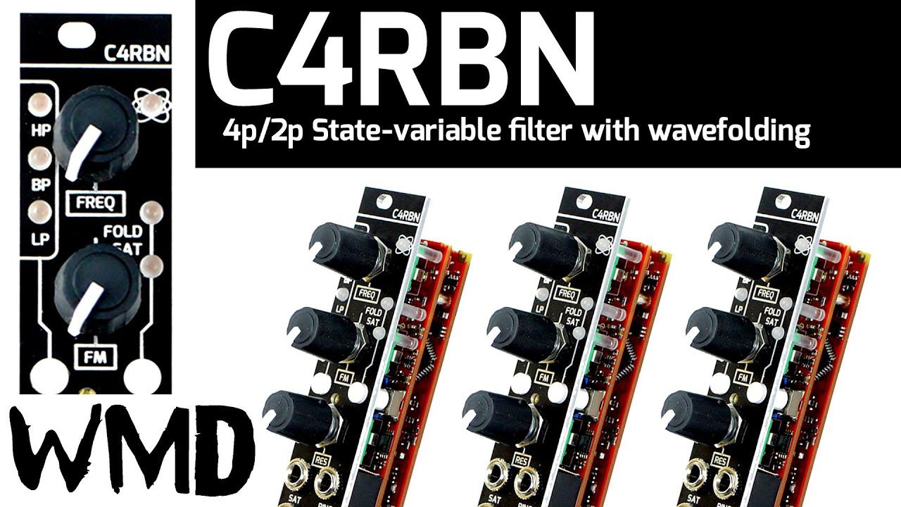 C4RBN is a 4/2-pole state variable filter with input saturation, output wavefolding and more. It offers a wide range of characters, from nice and clean filter sounds to screaming, squeaky, sounds.