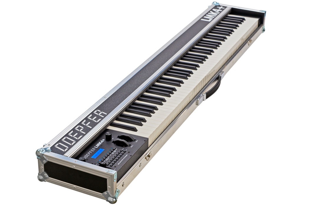 The LMK4+ is the high-end model among the Doepfer master keyboards with various possibilities for controlling sound and playing. Its high-quality hammer-action keyboard, the many controllers and connection options as well as the indispensable sturdy case in the format and design of a touring flight case make it one of the most popular devices of its kind for professional use.